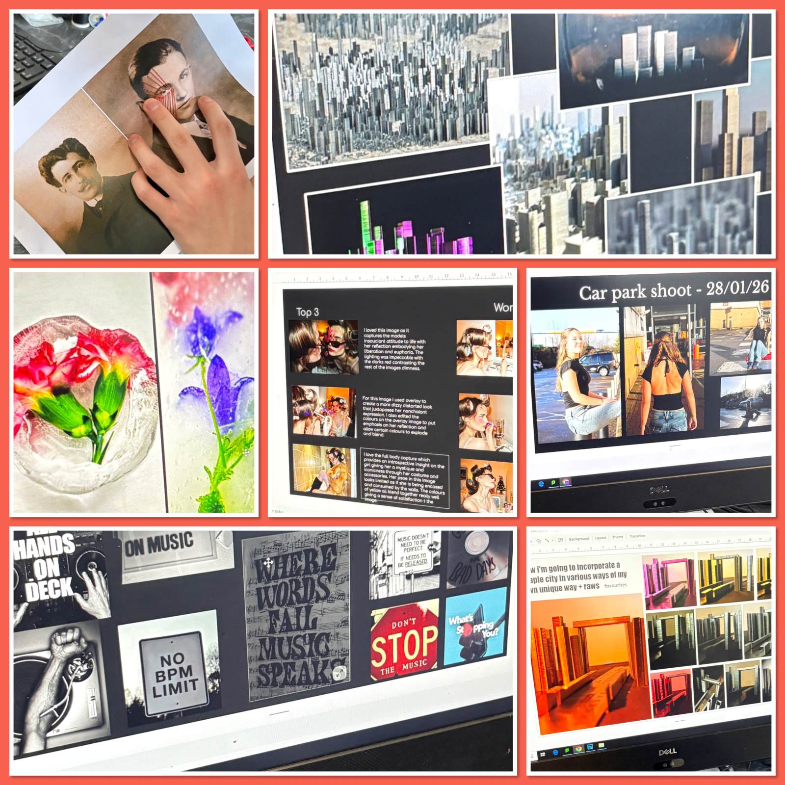 The Year 12 A Level Photography students have had a busy week working on their individual digital portfolios. Each student is encouraged to explore a different theme and topic. Current areas of exploration include Nature, Mental Health, Our World, and Emotions — a rich and inspiring collection of ideas that will inform exciting research and planned photoshoots.