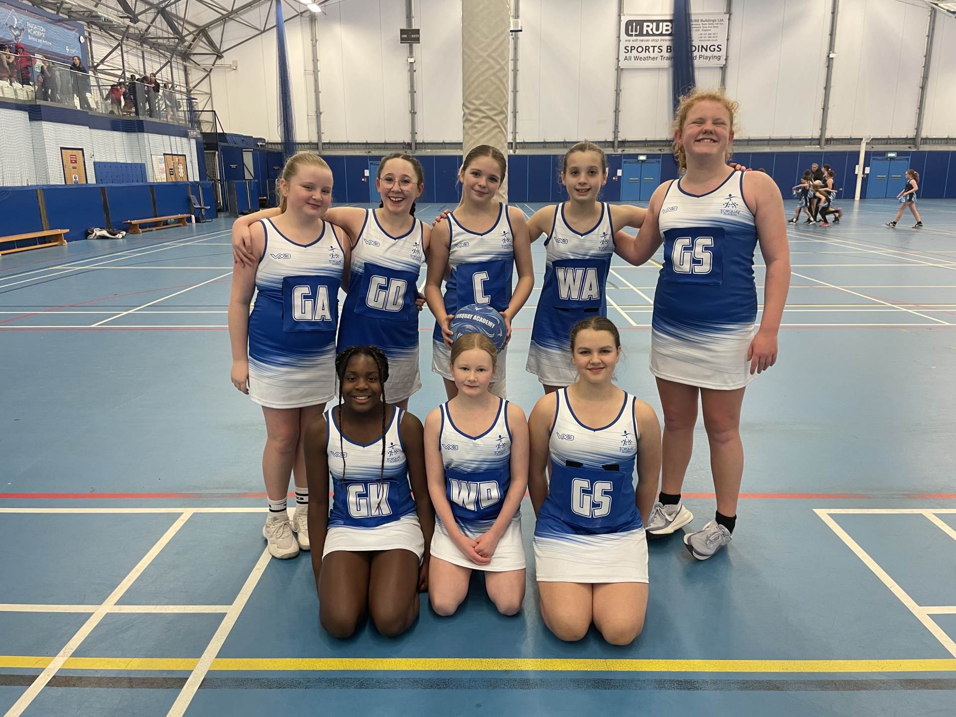 The A team produced a fantastic series of performances in the group stages, earning their place in the Cup competition. They played some excellent netball throughout the day, combining strong defensive efforts with effective attacking play against tough opposition. Their consistent performances saw them finish an impressive 5th overall out of 16 teams.