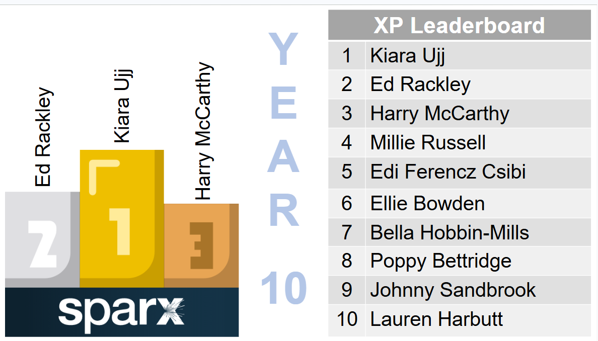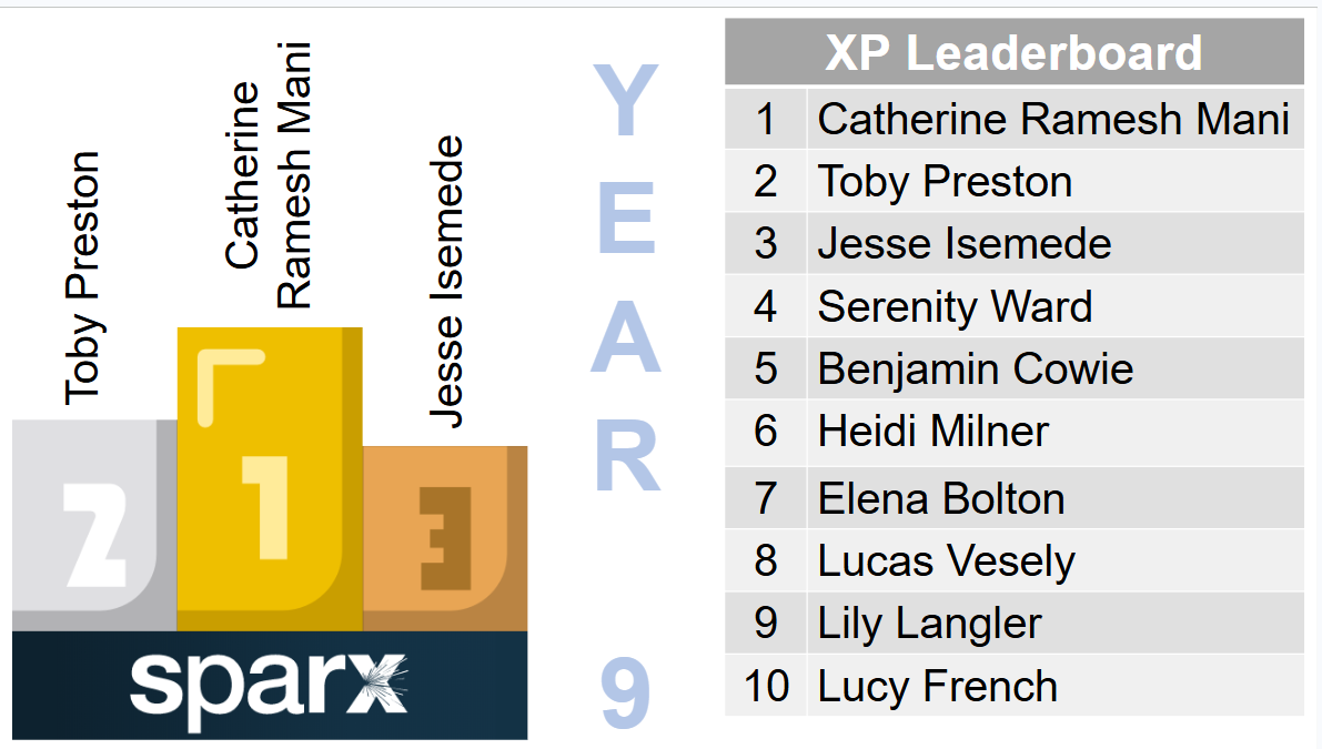 Year 9 - Leo Shaw, Ava McArdle, Toryn Bond, Oktawian Siennicki, Jax Biagott, Morley Villiers, Lucy French, Jessica Ferguson, Harry Austin, Frederick Blagden, Grace Gatting, Seren Chadwick, Aaron Pinto, Sofia Adamson, Riley Johnson, Rosie Bevan, Mya Pring, Nanma John, Phoebe Grindling and Morgan Fisher