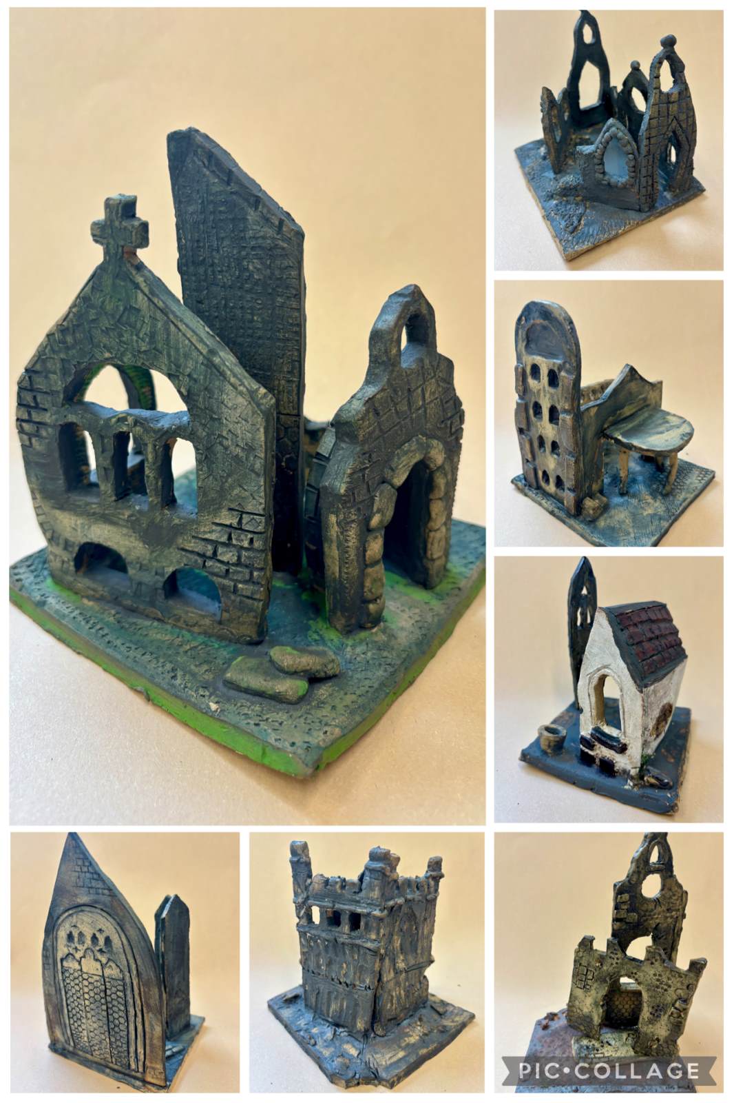 Influenced by John Piper’s dramatic shapes and bold contrasts, many students focused on strong silhouettes and carved deep lines into the clay to create shadow and texture. Others took inspiration from John Brickels’ expressive and structural approach to buildings, emphasising pattern, surface detail and strong linear qualities within their sculptures.
