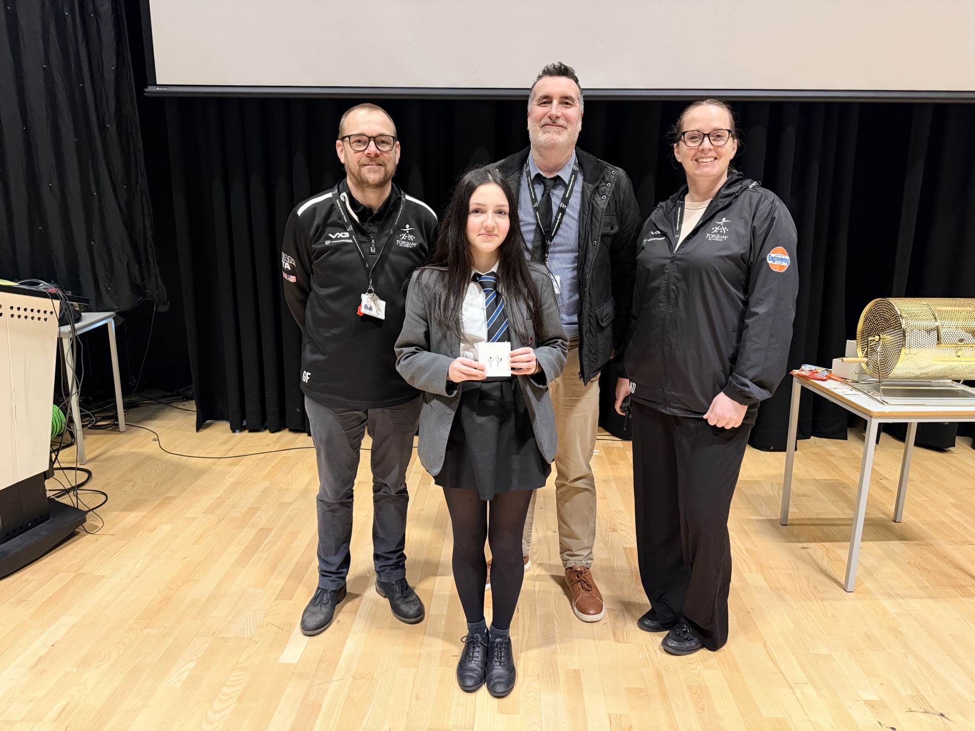 Louise ws drawn from the Year 10 tombola for this quarter's learning legend. She walked away with a brand new pair of Apple AirPods. She was very happy!