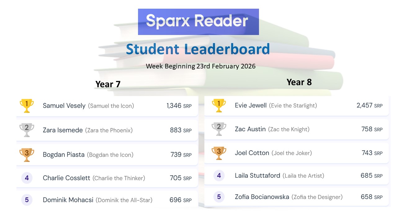 Year 9 - Kumar Hopton, Jake Richards, William Schmiedinghofer, Benjamin Cowie, Annalise Little, George Pitts, Hiba Zafar, Cooper Syms, Rosa Murray, Jacob Wakefield, Cayden Castle, Ollie Hallett, Wiktor Koza, Brogan Holmes-Inch, Alfie Mackin, Olivier Kawula, Maya Bench, JJ Howell, Isla Herbert, Arlo Brady, Izzie Mildren, Elliott Hytche, Lyra Sully, Lottie Knight, Ella Jandara, Riley Page, Oliver Forsdyke, Billie-Jo Dolling, Isla Bryant, Bonnie Stacey, Riley Gomes and Freddy Novis