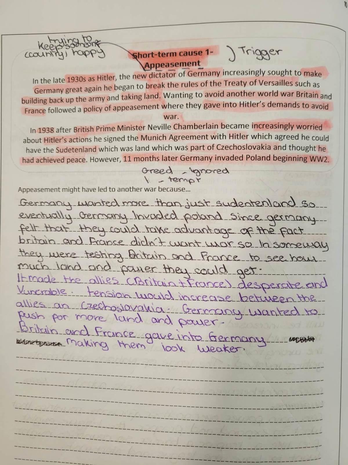 Year 8 have been consolidating the causes of World War Two and considering the idea of which country could be argued to have held the most blame. Students have shared some really impressive judgements which have demonstrated their critical thinking skills.