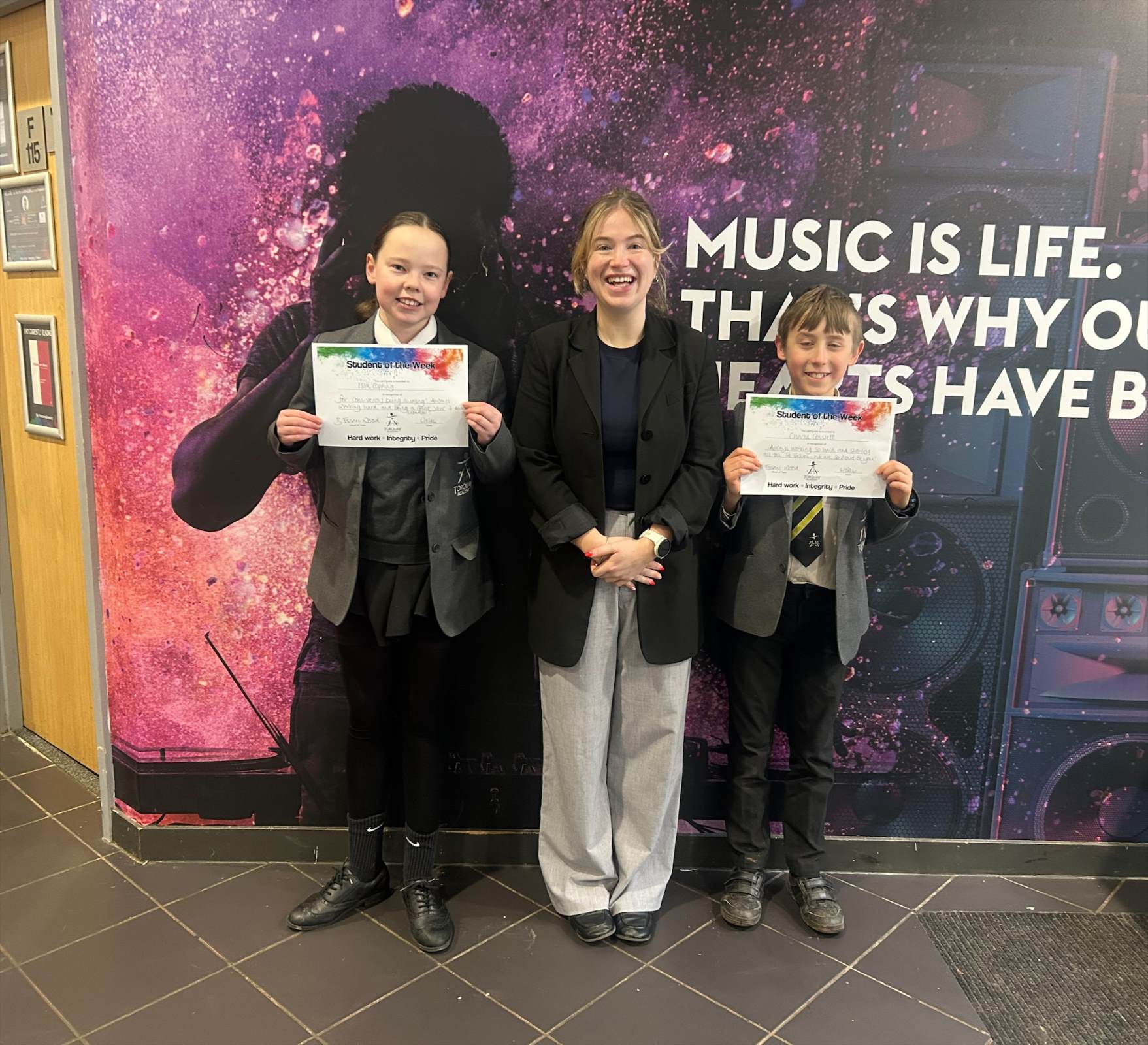 Year 9 - Keylan Hodgson, Tyler Davis, James Cosh, Wiktoria Aleksander, Morgan Fisher, Gabi Cobain, Elena Bolton, Oakley Mudge, Hydie Munday, Faith Hartley, Jack Robinson, Jack Crabb, Tyler Jackson, Flo Evans, Ania Rozanska, Harlow Bown, Jelani Ondo-Chamielec, Ebany Fawkes, Ellie-Mae Burton, Zachary Kittow, Bradley Wright, Seren Panther-Glinn, Katie Tonks, Mila Cairney, Layla Lock, Alana Houlihan, Haydon Coatesworth, Charlie O'Connor and Dylan Drinkwater