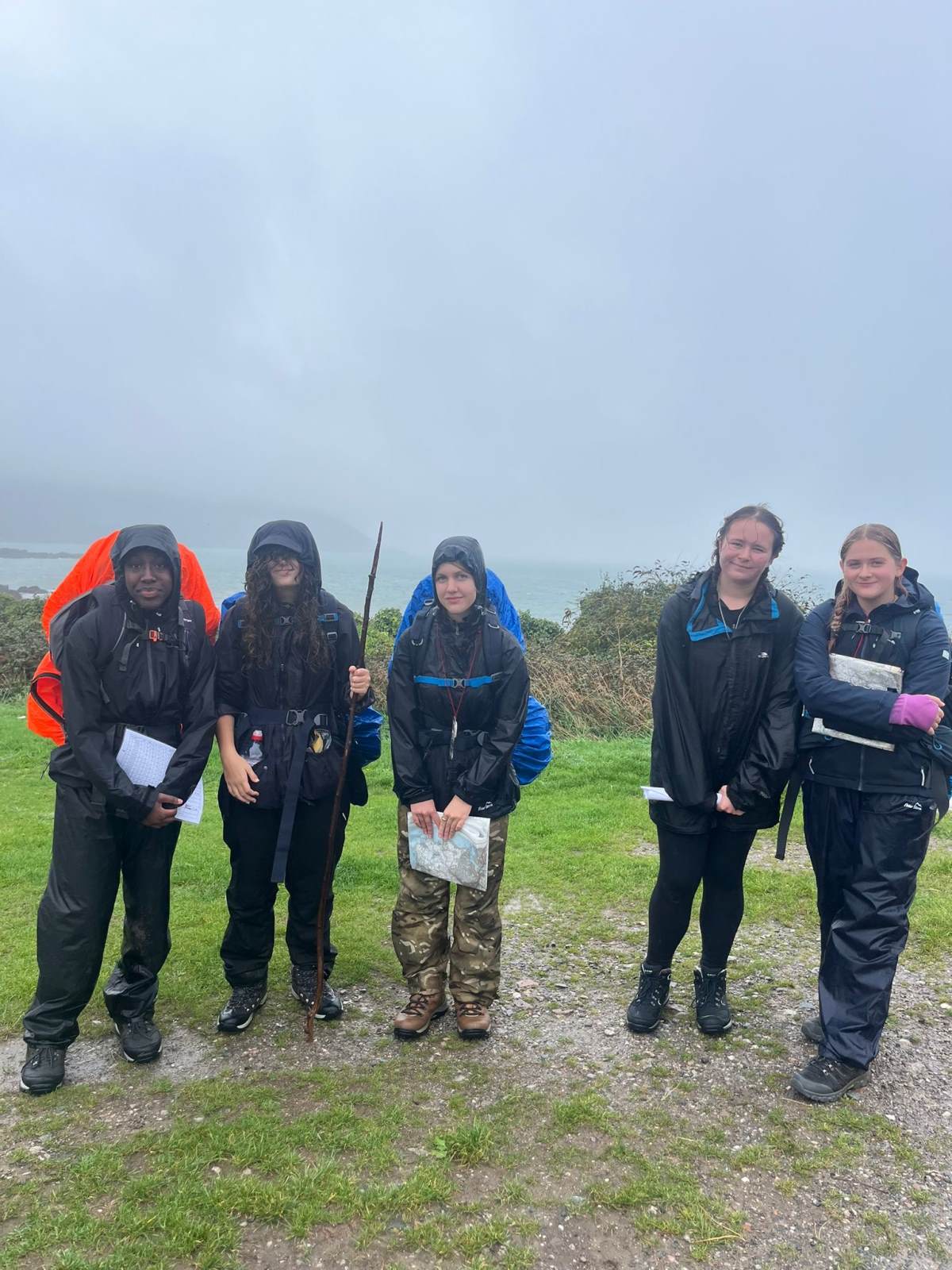 The final day arrived with the heavens well and truly open! Rain was falling heavily and the wind was gusting to Force 8. The tents had been set up competently so no one woke up in soggy tents! The decision was made by staff that the start of the final day should be delayed and the students had a bit of a lie-in! The worst of the weather was forecast to pass through by 10am so the teams start times were delayed until then. Breakfast and packing tents in the rain was not a pleasant experience but not one of the students complained! All teams set off in good spirits to complete their final day of expedition. With amended routes planned during the morning wait the teams worked really hard to make their destination at Mountbatten Breakwater in Plymouth. Each team successfully made the end point and coped admirably with the heavy rain showers and strong wind gusts.