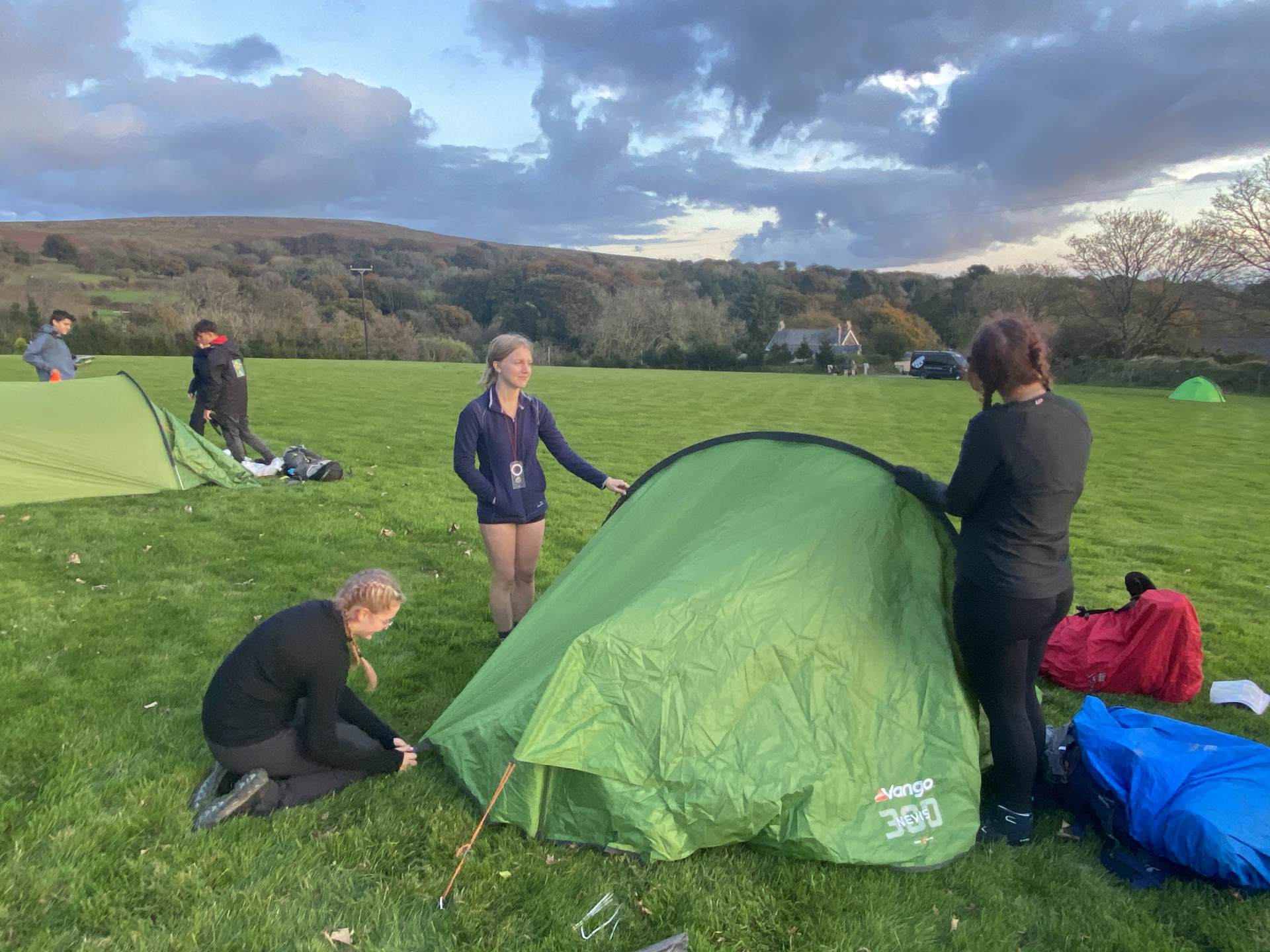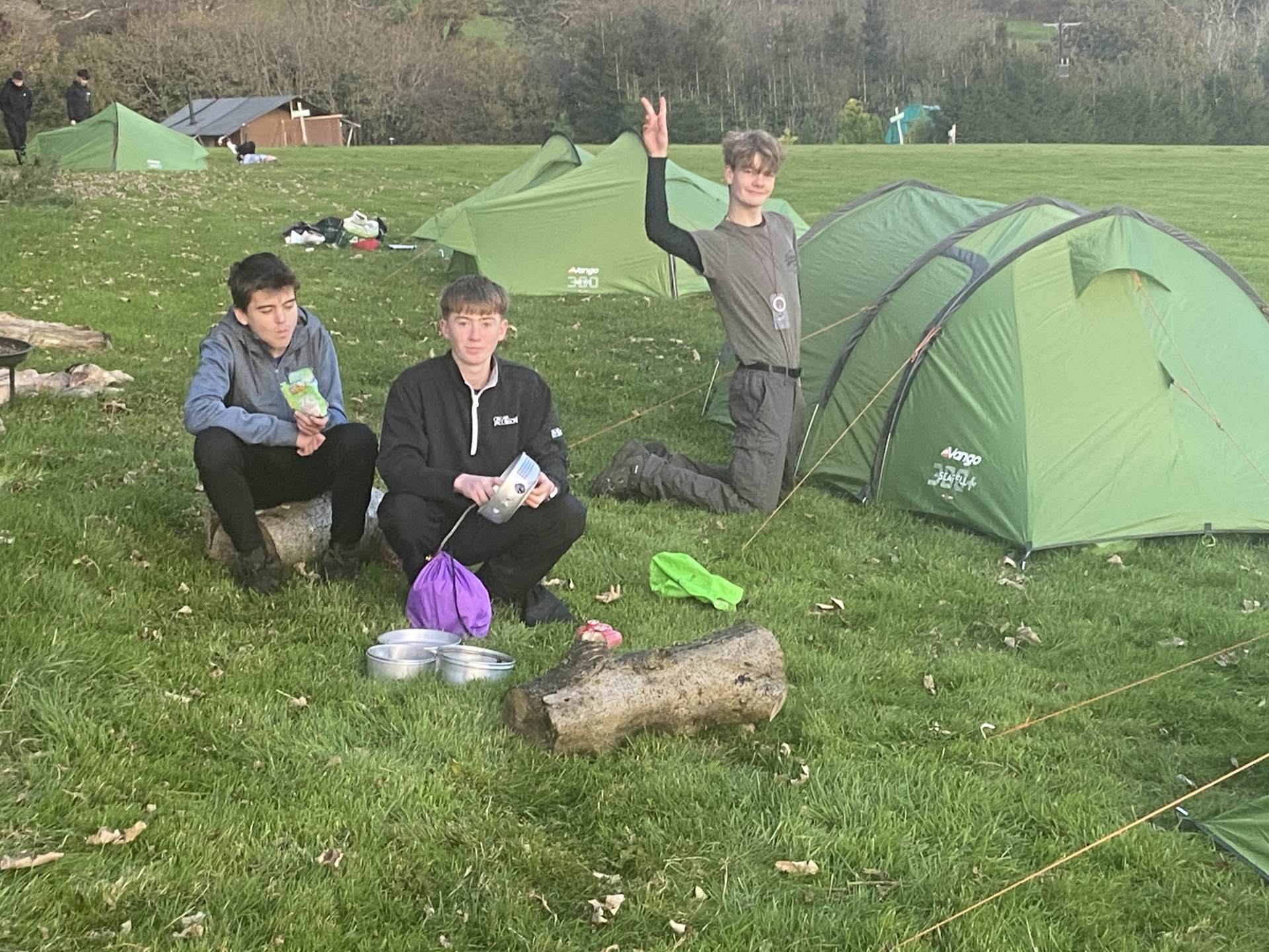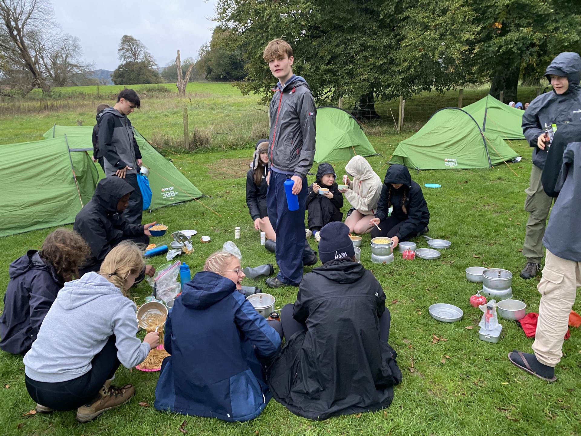 Once again the teams showed excellent campcraft skills on arriving at the campsite. They got their tents up quickly and got their evening meals cooking on their gas stoves. They had heard news from Mr Adams that heavy rain and strong winds were forecast for the night and morning until 10am. It was vital that tents were well tensioned and pegged down to counter the elements.