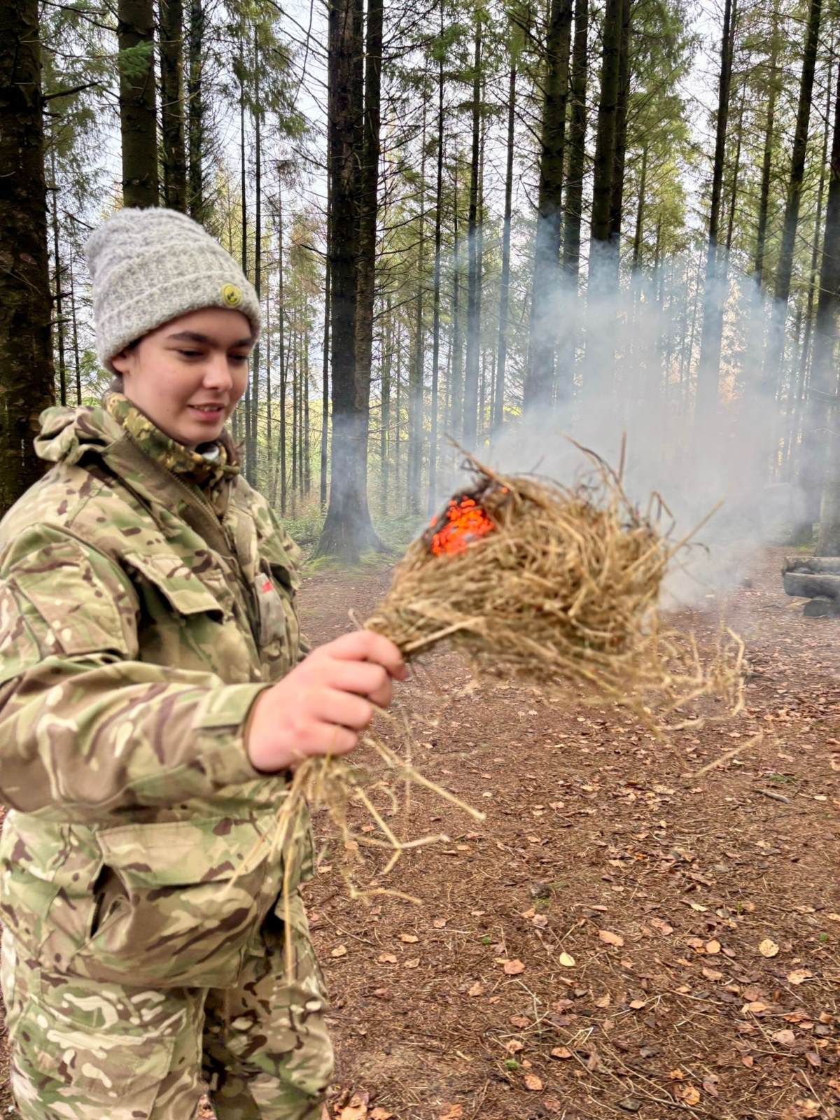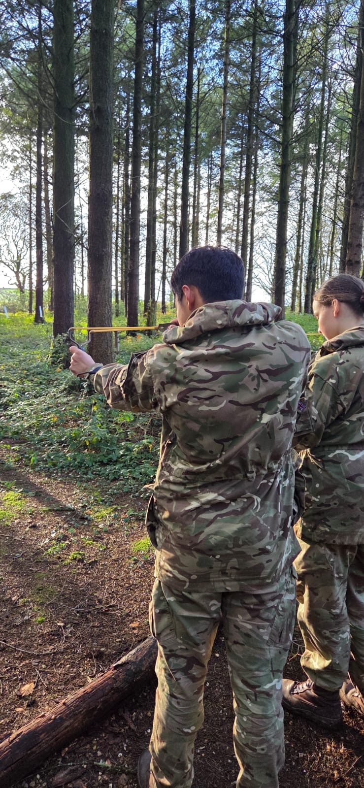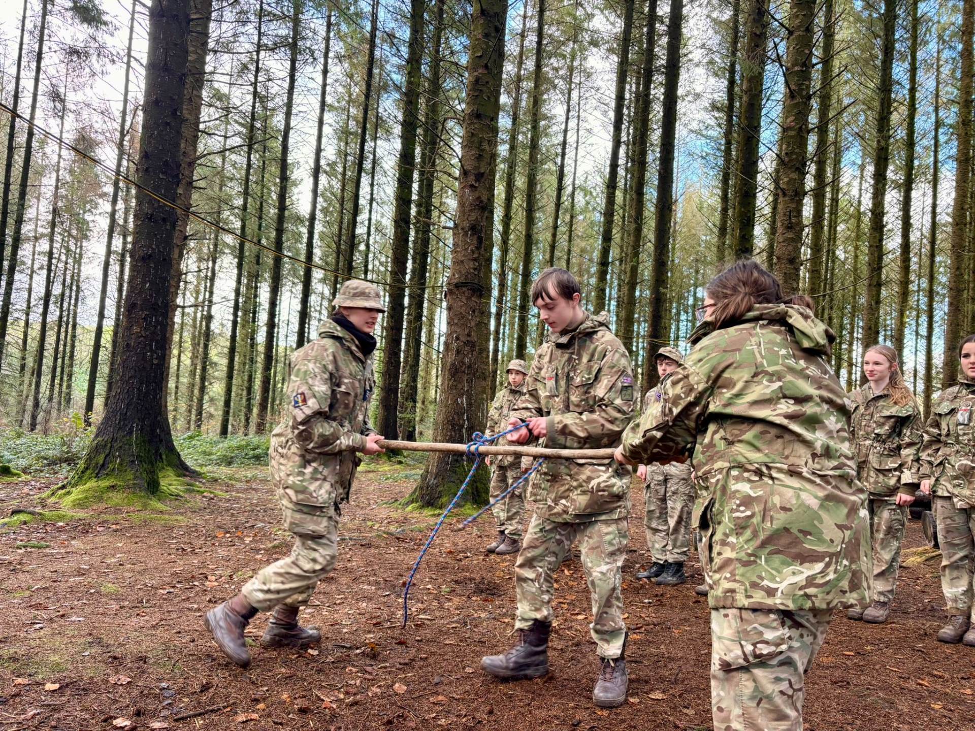 The cadets arrived on Friday evening and, with head torches on, made their way into the wood block where their sleeping shelters were already set up. Once bags were dropped, a well-earned pasta meal was served to fuel the evening ahead.
