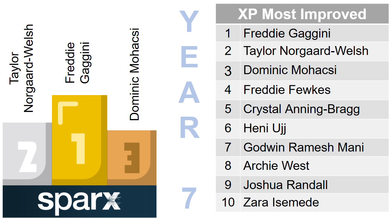 Year 7 - Phoebe Herbert, Charles Hepburn, Lacey Dennett, Amelia Cony, Ruby Sambrook, Ollie Webster, Marcus Feasey, Archie Faulkes, Jax O'Connor, Taylor Norgaard-Welsh, Toby Giles, Louise Ennis, Alfie Clark, Jazz Morris, Archer Burton, Jordan Allington, Orla Cutajar, Oscar Bowyer, Isabella Hughes, Ethan Graham, Olivija Marsalkaite, Jaxon Bedford Laity, Layla Selley-Dillon and Fran Mildren
