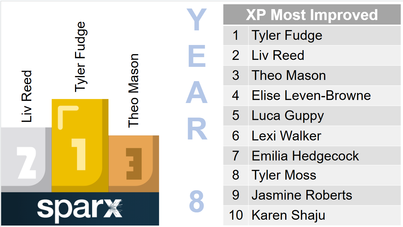 Year 8 - Freddy Bonner, Archie Kershaw, Oscar Josey, Ethan Halliday, Isla-Mae Gale, Zack Jeneway, Caiden Edmonds, Jack Lennox-Statham, Myles Bonnici, Ela Uven, Myla Thomas, Joe Matthews, Emilia Hedgecock, Braxton Biggs, Zafirah Faryal, Laila Stuttaford, Nora Gordon, Cole Washington and Sophia Houghton