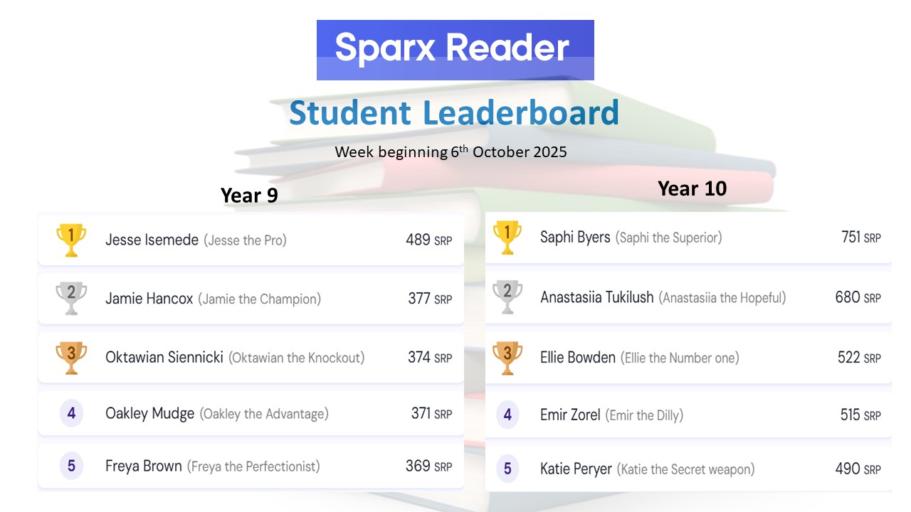 Today we awarded our first Bronze Sparx Reader badges and certificates of the year, to those students who have achieved 5,000 SRP. Congratulations to them for earning their first Sparx Reader badge.