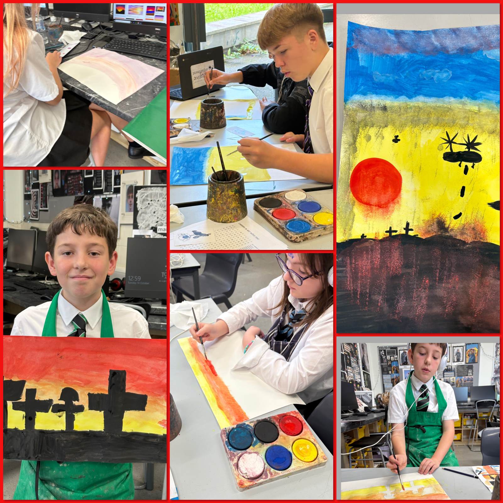 The students showed great sensitivity and creativity throughout the task, and their finished pieces are both visually impactful and deeply meaningful.