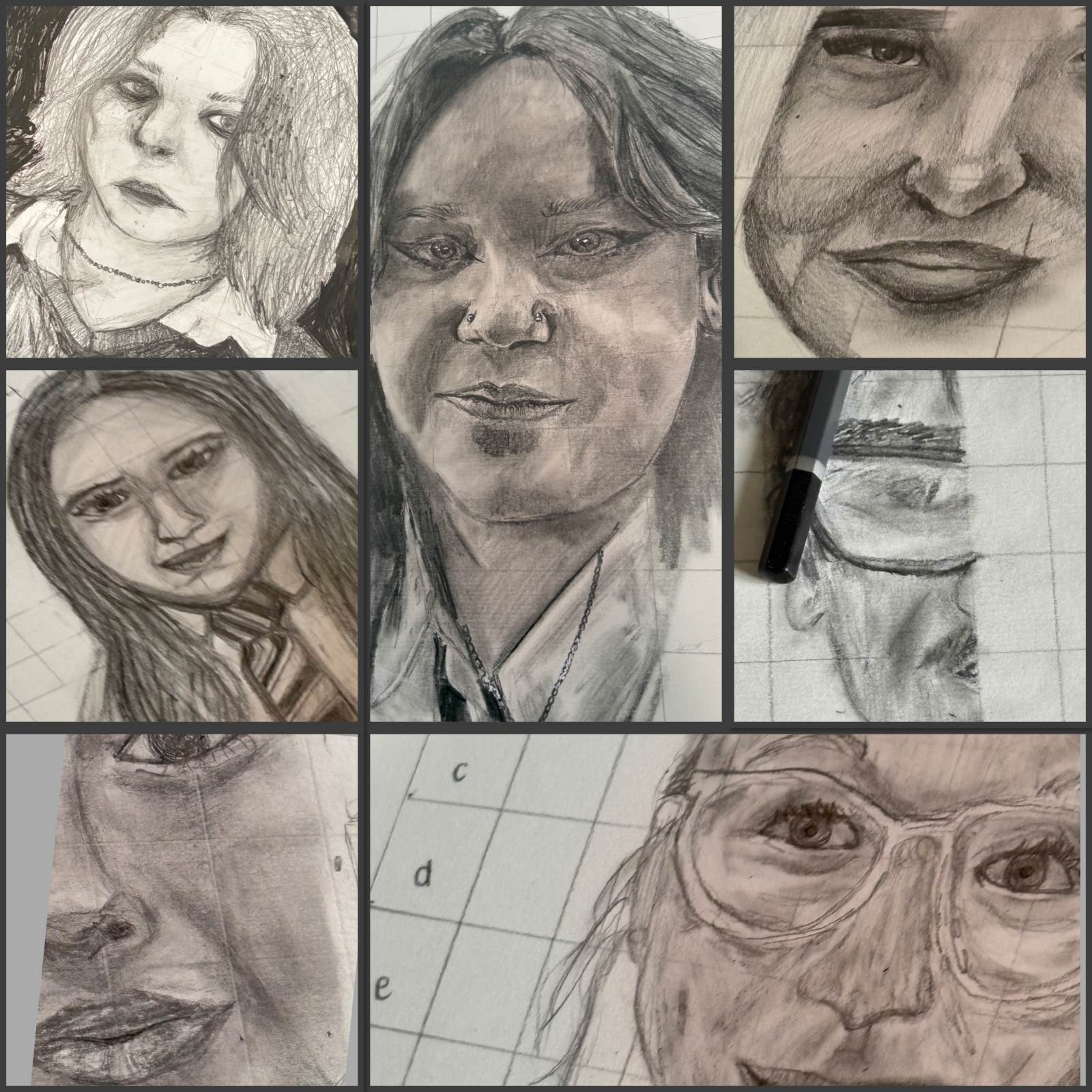 Over the course of just two lessons, students demonstrated exceptional focus and dedication. They explored a wide tonal range, working with pencils from HB to 6B to create subtle gradations and develop depth in their work. The resulting portraits showcased impressive technical skill and a keen eye for detail.