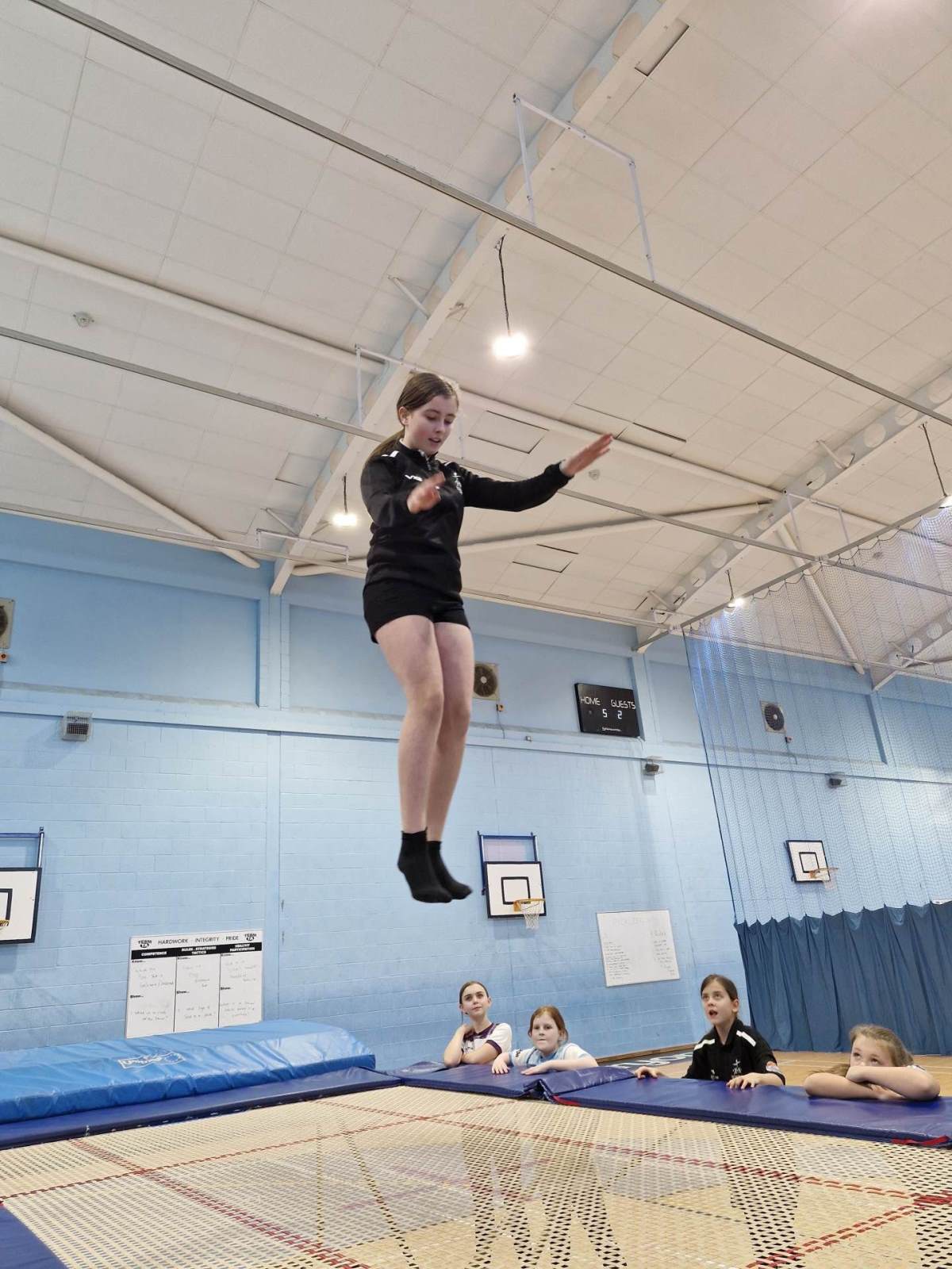 Before Christmas, Miss Lewis was kind enough to let the Guides on the trampolines! The girls had an amazing time, being taught everything from safety on the trampolines to some quite tricky routines. The girls all had a great time and showed off some amazing skills.
