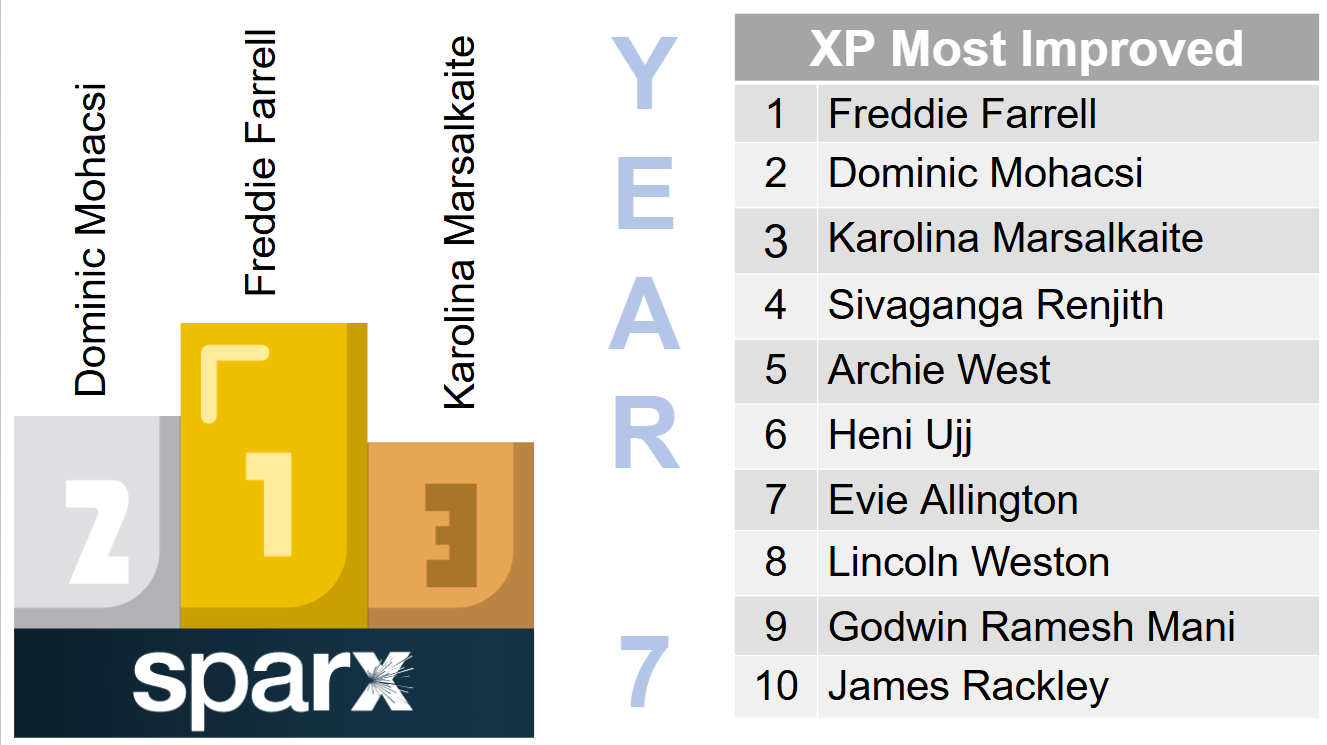 Year 7 - Lewis Tandy, Maisy Sellick, Freddie Osborne, Oakley Johnson, Issac Churchill, Heni Ujj, Annie Reece, Benji Kittow, Aimee Byrne, George Bailey, Sid Walters, Madison Trott, Izzy Beer, Aisha Dunkley-Kennedy, Nathan Hooper, Frankie Tait, Lucy-May Stevens, Damon Reen, Bogdan Piasta, Alya al Ali, Lincoln Weston, Baran Sular, Sienna Thomas, Scarlet Seton, Rupert Jones, Kayleigh Norgaard-Welsh, Meelie Harvey and Isla Copping