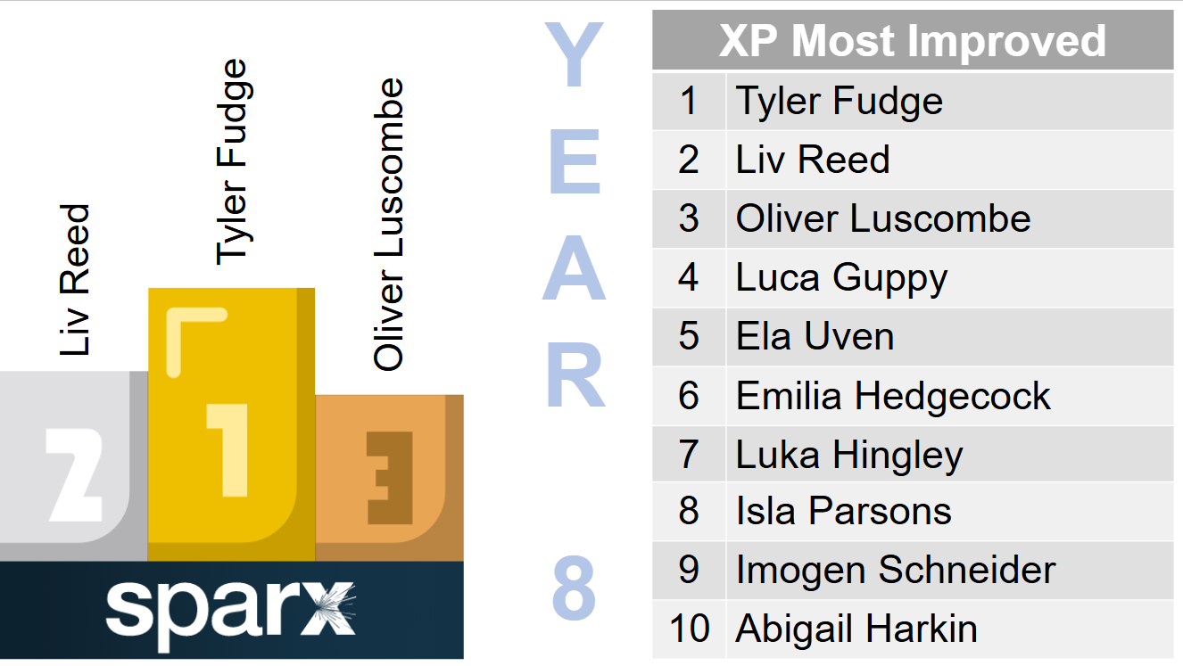 Year 8 - Ava Harrison, Bailey Clements, Madison Stewart, Milly Skelly, Jaycie Kennedy-Taylor, Jacob Caldwell, Mason Beardsley, Corah Luscombe, Freddie Thatcher, Evie Jewell, Elliot Holmes-Inch, Ruben Tidball, Scarlett Slater, Jasmine Roberts, Toby Roadnight, Liv Reed, Eryn Stafford-Summers, Riley Piercy, Caelan O'Gorman, Alfie Carpenter-Sorton, Luka Hingley, Maja Kokoszka, Lillyanna Edmonds, Caleb Drein, Ruby Treadaway, Gabriel Talbot-Powner, Bailey Jones, Freddie Brabon, Rufus Kerslake, Grace Donnelly, Amelia Woodland, Luna Mearns, Louie Gribbin, Calvin Downer, Abigail Rayment, Darcy Gibbings and Mabel Clatworthy