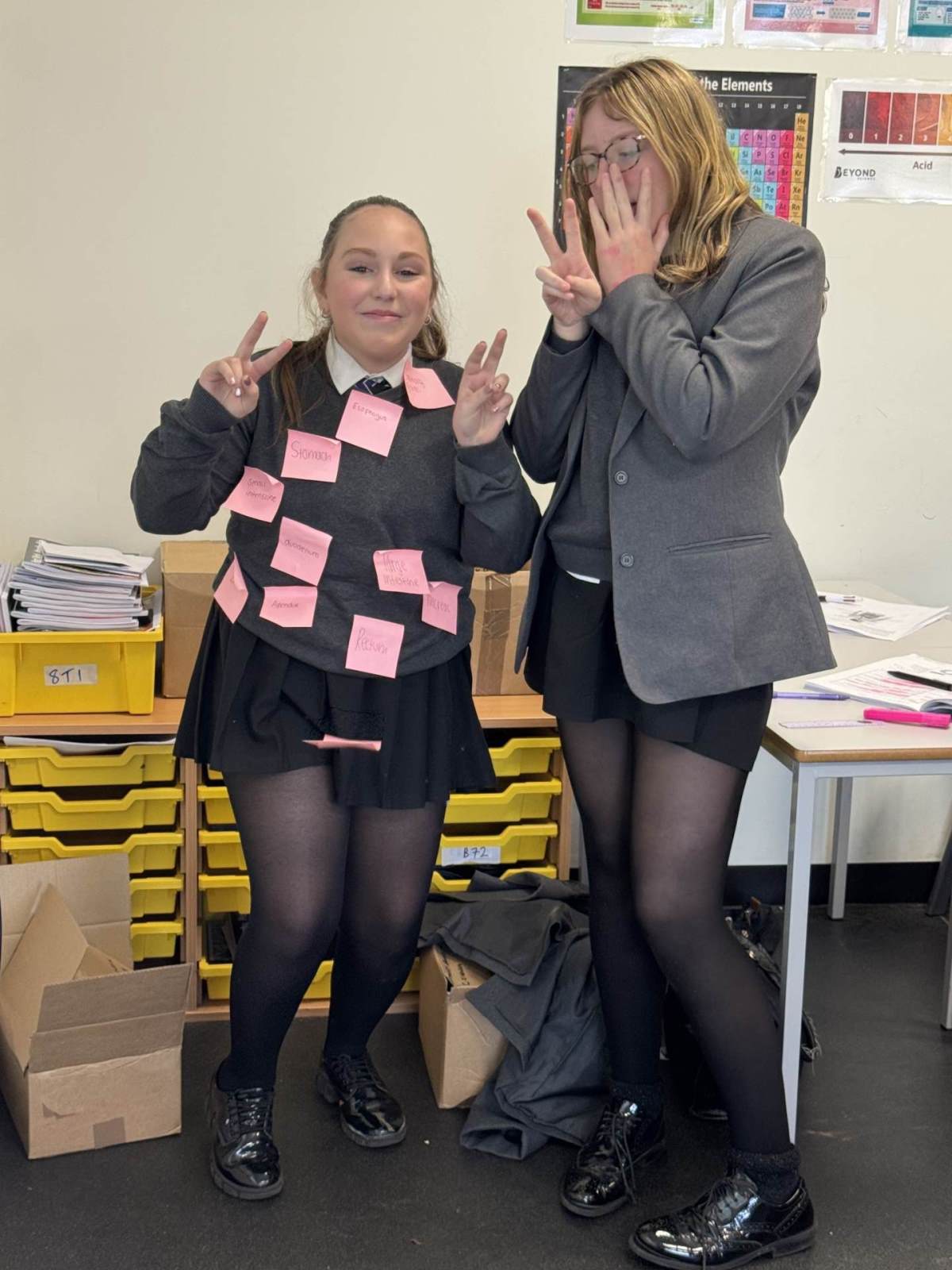 Students in Year 9 were able to label themselves to where their hormone secreting glands are, which control Homeostasis.