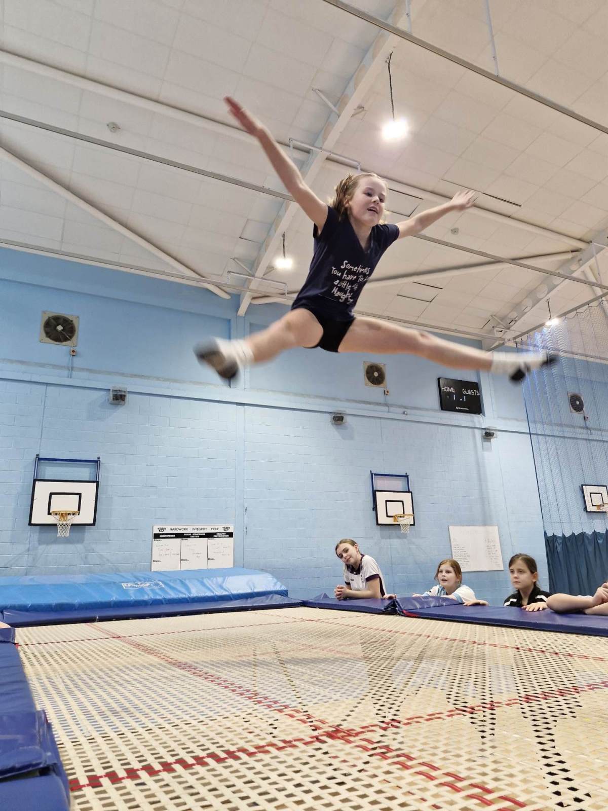 Before Christmas, Miss Lewis was kind enough to let the Guides on the trampolines! The girls had an amazing time, being taught everything from safety on the trampolines to some quite tricky routines. The girls all had a great time and showed off some amazing skills.