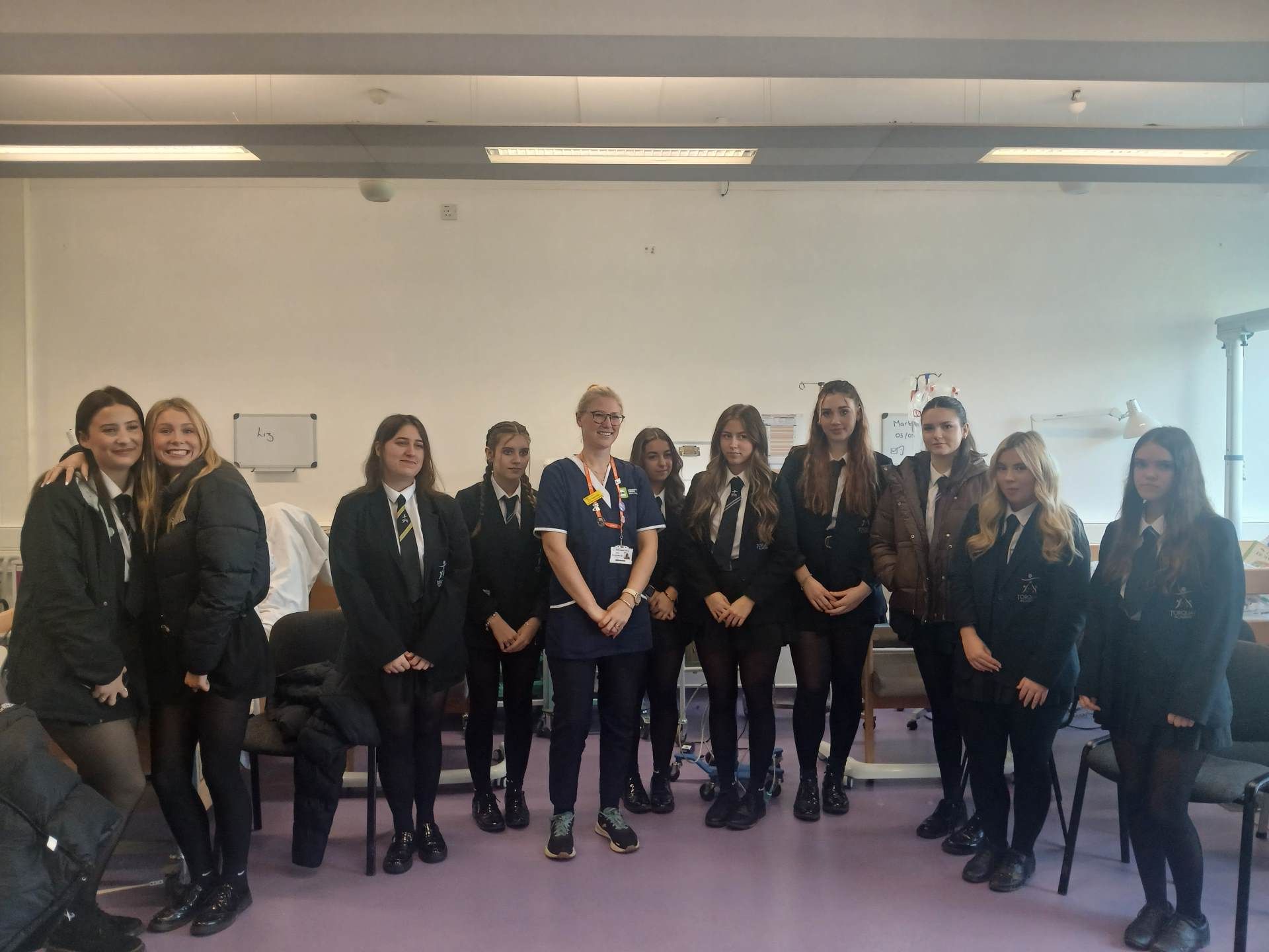 Year 12 and 13 Health and Social Care students recently took part in an engaging taster session at the University Centre at South Devon College, where they explored a range of progression routes into Nursing and other health-related careers.Students were highly impressed by the outstanding facilities, including the £10 million simulated hospital ward featuring interactive patients. They had the opportunity to practise clinical skills such as taking pulse rates and temperatures, using a stethoscope, and comparing their findings with normal clinical values.