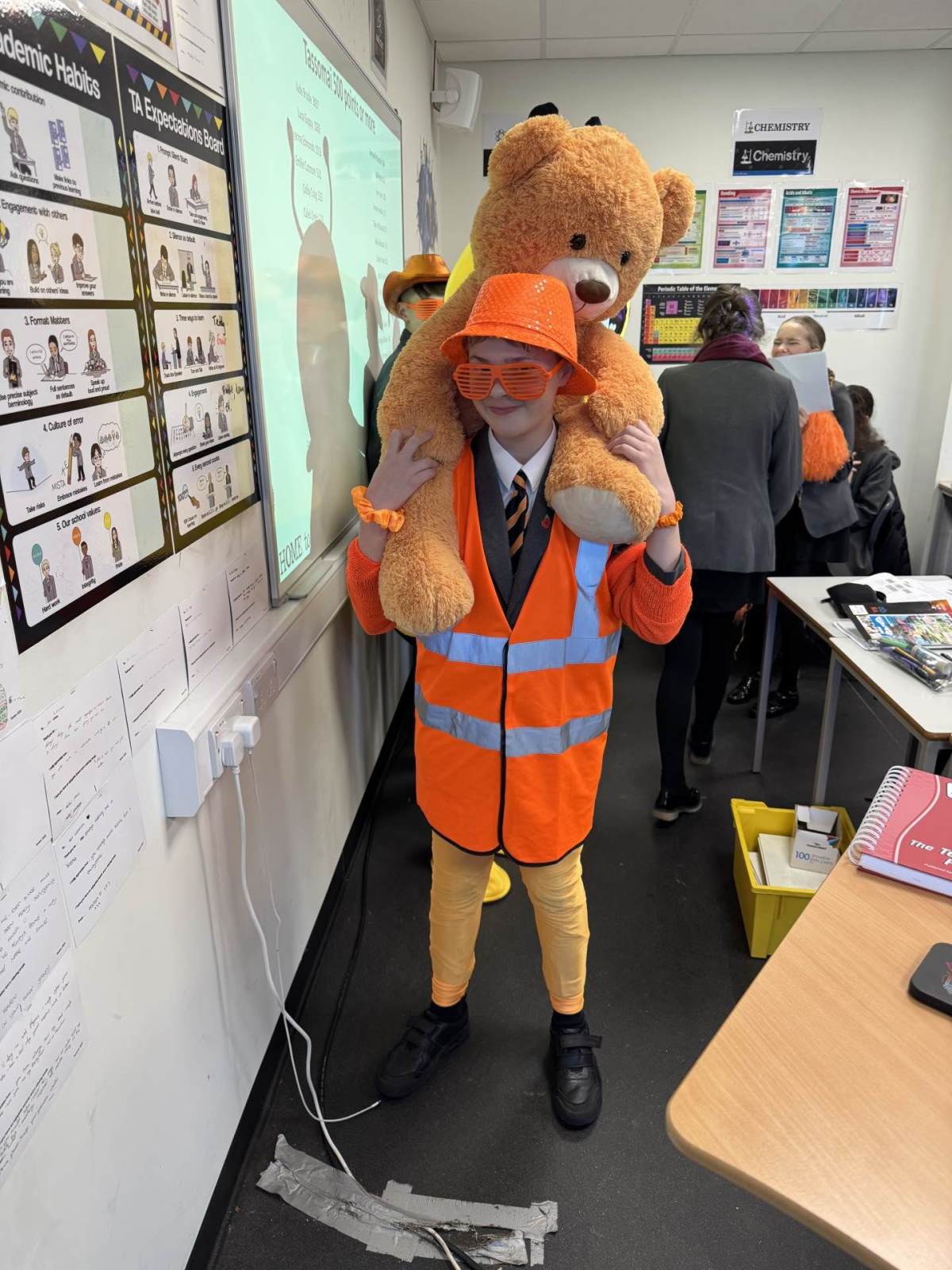 House Student of the Week, George, celebrating in true Harrison Hornet style whilst visiting other Harrison year groups to award the next student their award.