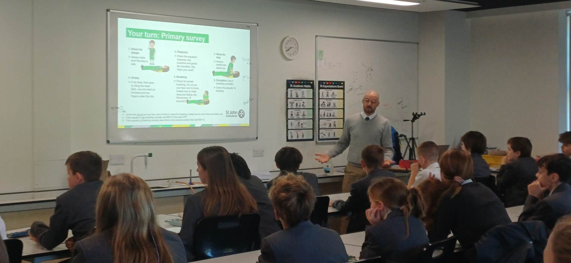 We have increased our First Aid provision this year. Year 7 students began with sessions on either the recovery position or bleeding. Over the course of the year, every group will complete both of these sessions as well as one on CPR. Year 10 students focused on CPR this week, practising their skills on our training dummies.