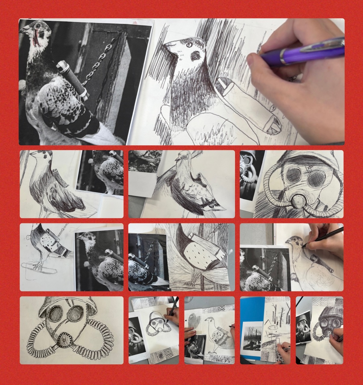 Our Year 8 students have embarked on a fascinating new project, diving into the history and imagery of the First World War. Using reference materials – including carrier pigeons, gas masks and landscapes – they are producing detailed observational studies that capture the atmosphere of the period.