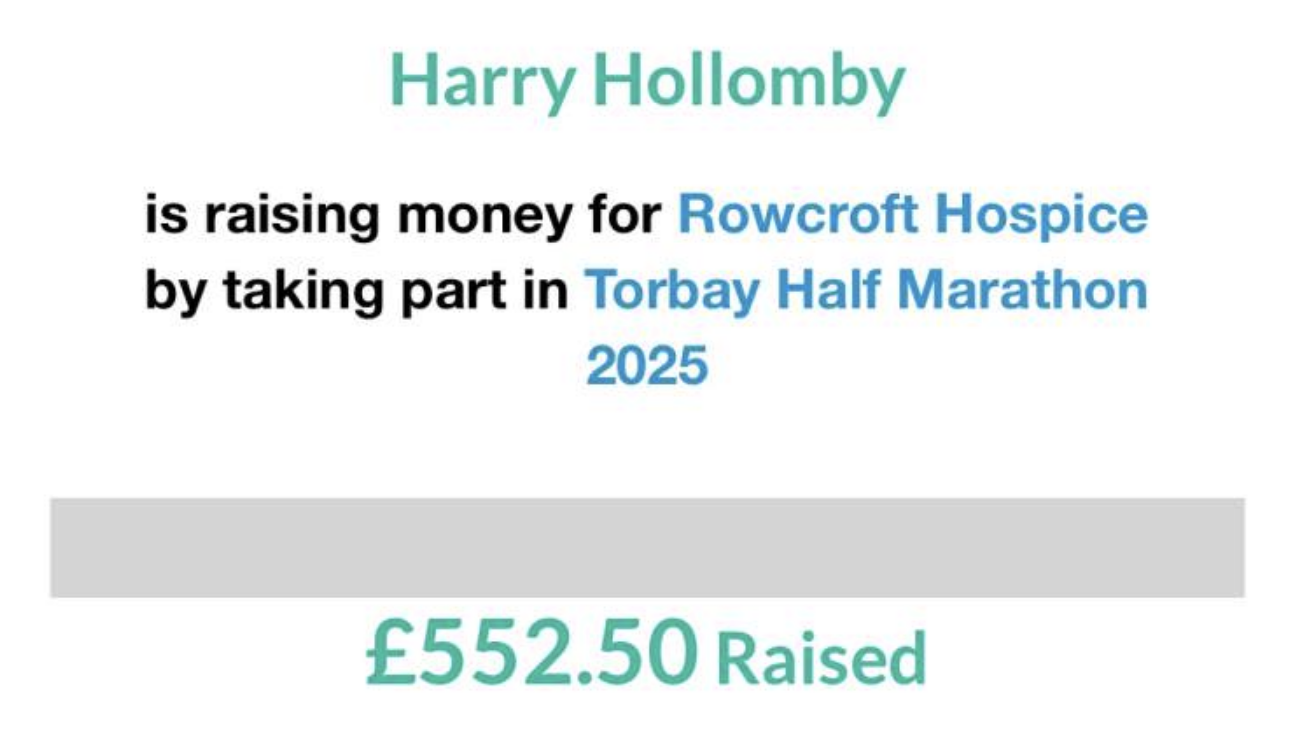 Well done to Harry Hollomby who took part in the Torbay Half Marathon at the weekend. Despite carrying a knee injury, Harry showed real determination and resilience to complete the 13.1 miles in an impressive time of 1 hour and 48 minutes.