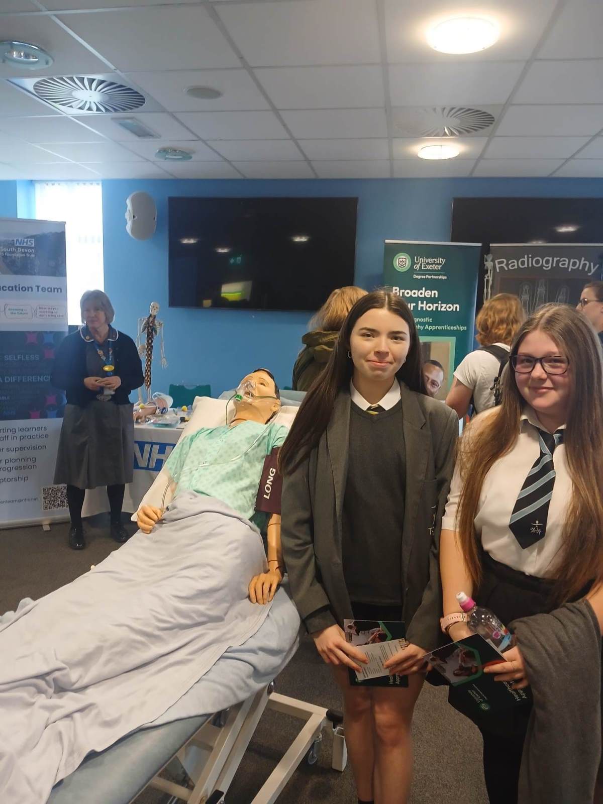 Shortly before half term, the Year 11 Health and Social Care group had the valuable opportunity to attend the Apprenticeship and Careers Event at Torbay Hospital.The event brought together a wide range of hospital departments, universities and healthcare professionals, enabling students to gain insightful information about the diverse career pathways available within the sector. Importantly, they were able to explore the qualifications, training routes and key skills required for different roles.
