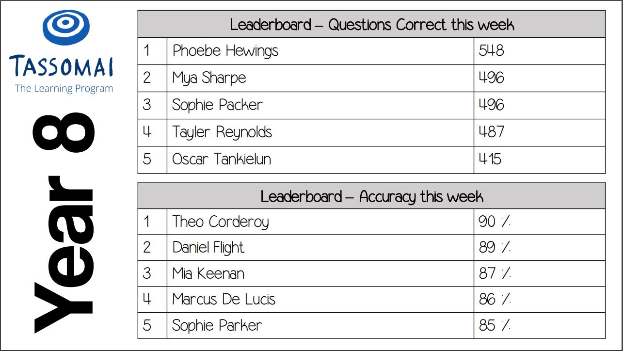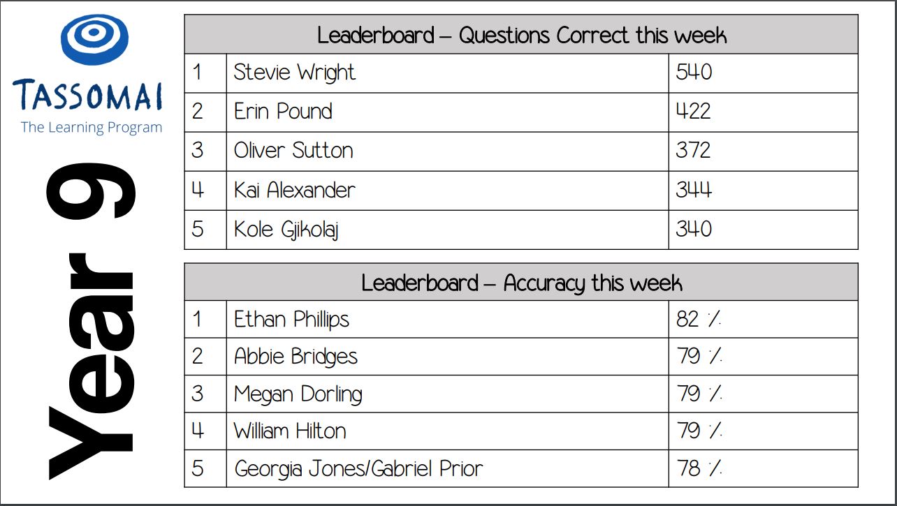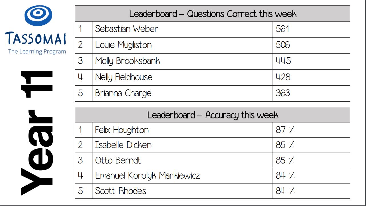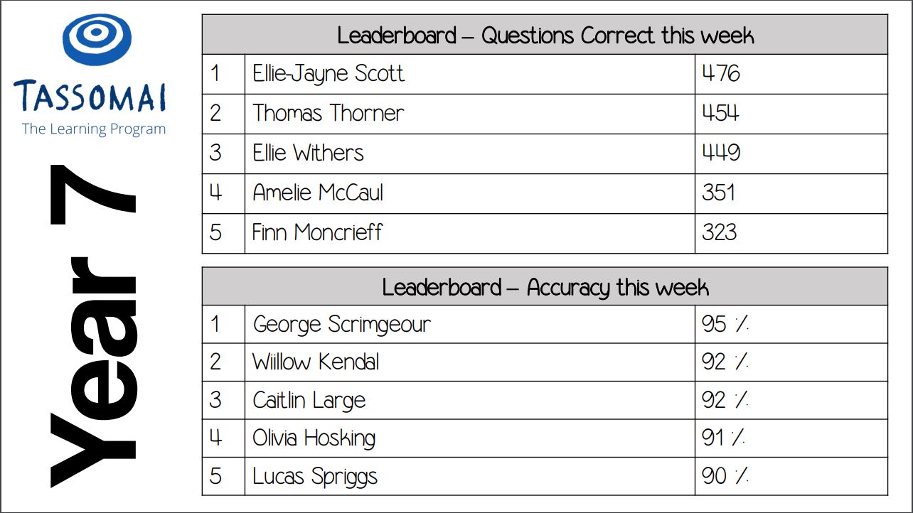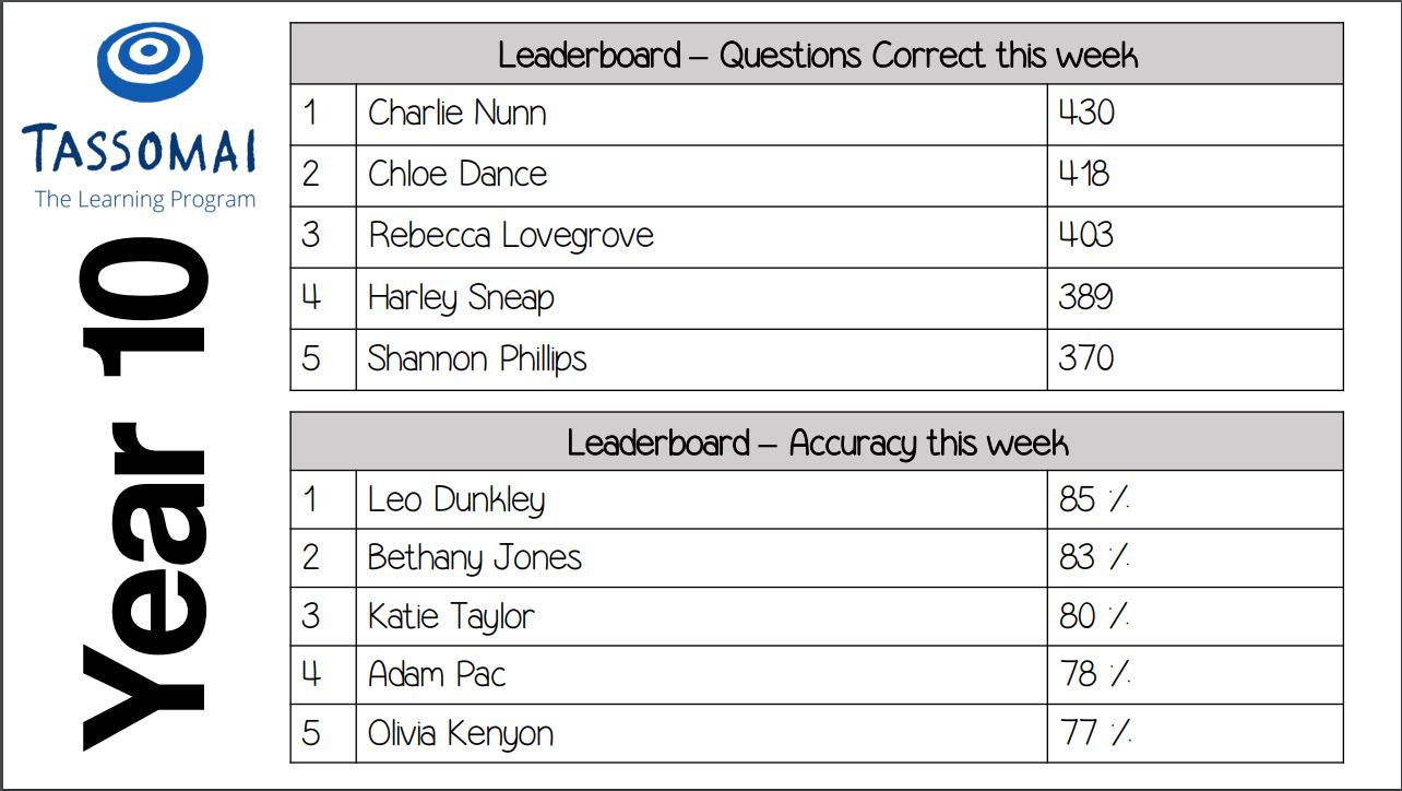 Every week, be sure to check the principal’s blog to see leaderboards for each year group – next week, you may feature!