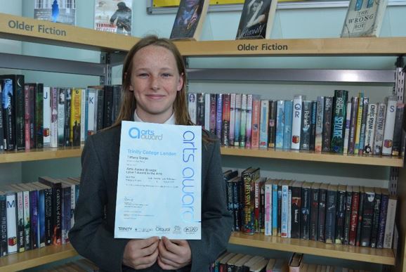 Pictured: Year 7 student, Tiffany Doran arts award certificate