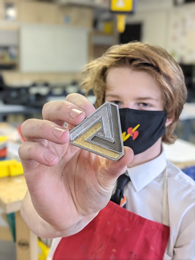 A Level and GCSE Product Design students have been getting straight back into practical work! They’ve designed and developed pewter ornaments inspired by the geometric patterns made famous by the Art Deco and Memphis design movements. By combining creativity with computer aided design, laser cut patterns are created around which molten pewter is cast. Part of this project has also included the fabrication of aluminium casting blocks utilising skills in marking out, drilling, countersinking and thread cutting. Students heat the pewter in a crucible with a gas torch to over 200 degrees celsius and then pour the molten liquid metal into carefully assembled moulds. The final outcomes have been stunning, we hope you agree!