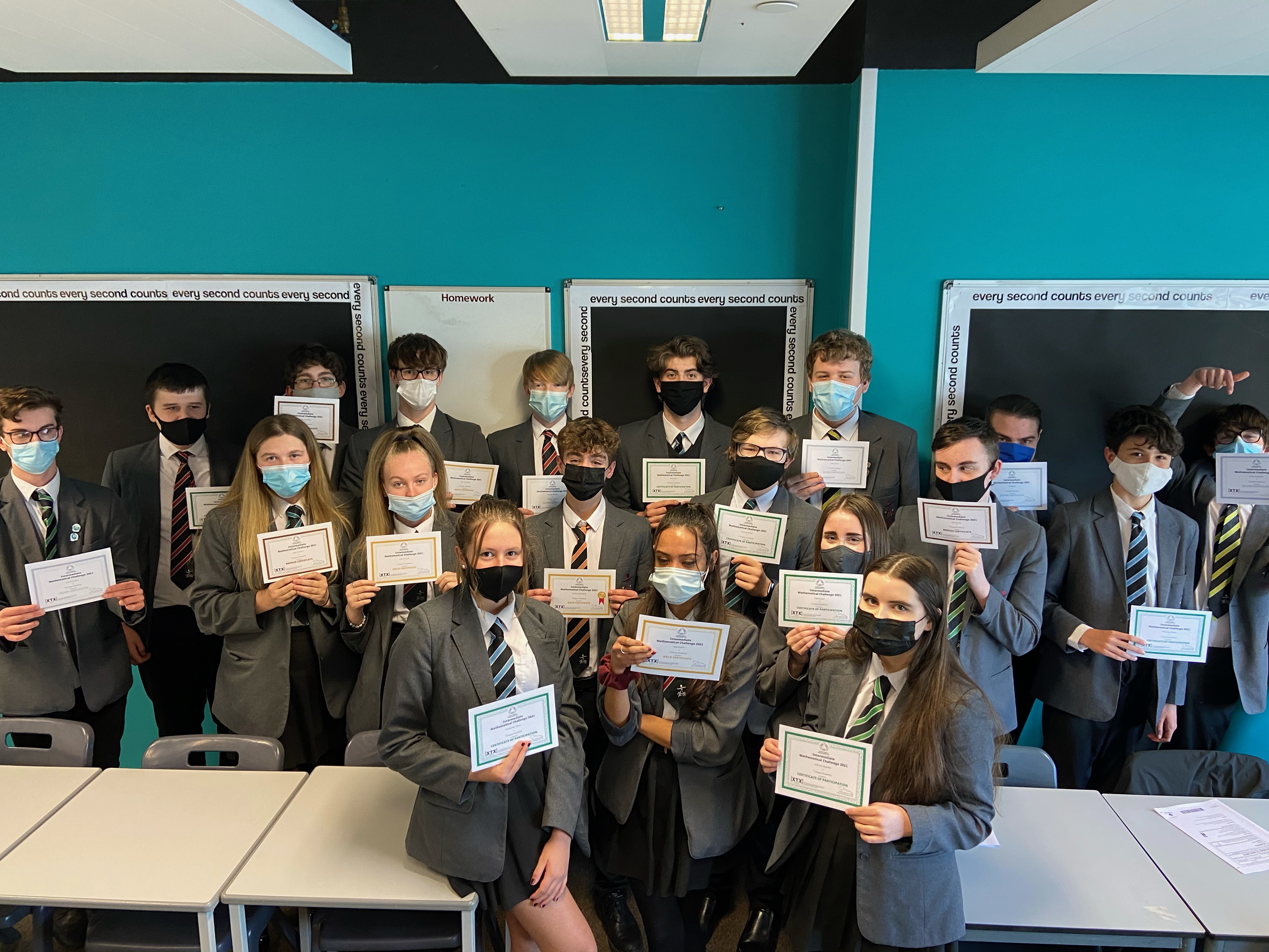 Year 8 – Jake Green, Ryan Hooper, Elspeth Herring, Enrika Vasiliauskaite, Cameorn Bolton-Caulfield, Michalina Jarosz, Lily Lewis-Shermer, Maddy Fairhurst, Tammy Westacott, Harvey Squires, Thomas Harrison, Emily Chamberlain, Riley Batten, Oliver Boyce, AJ Alexander and Olivia Wood