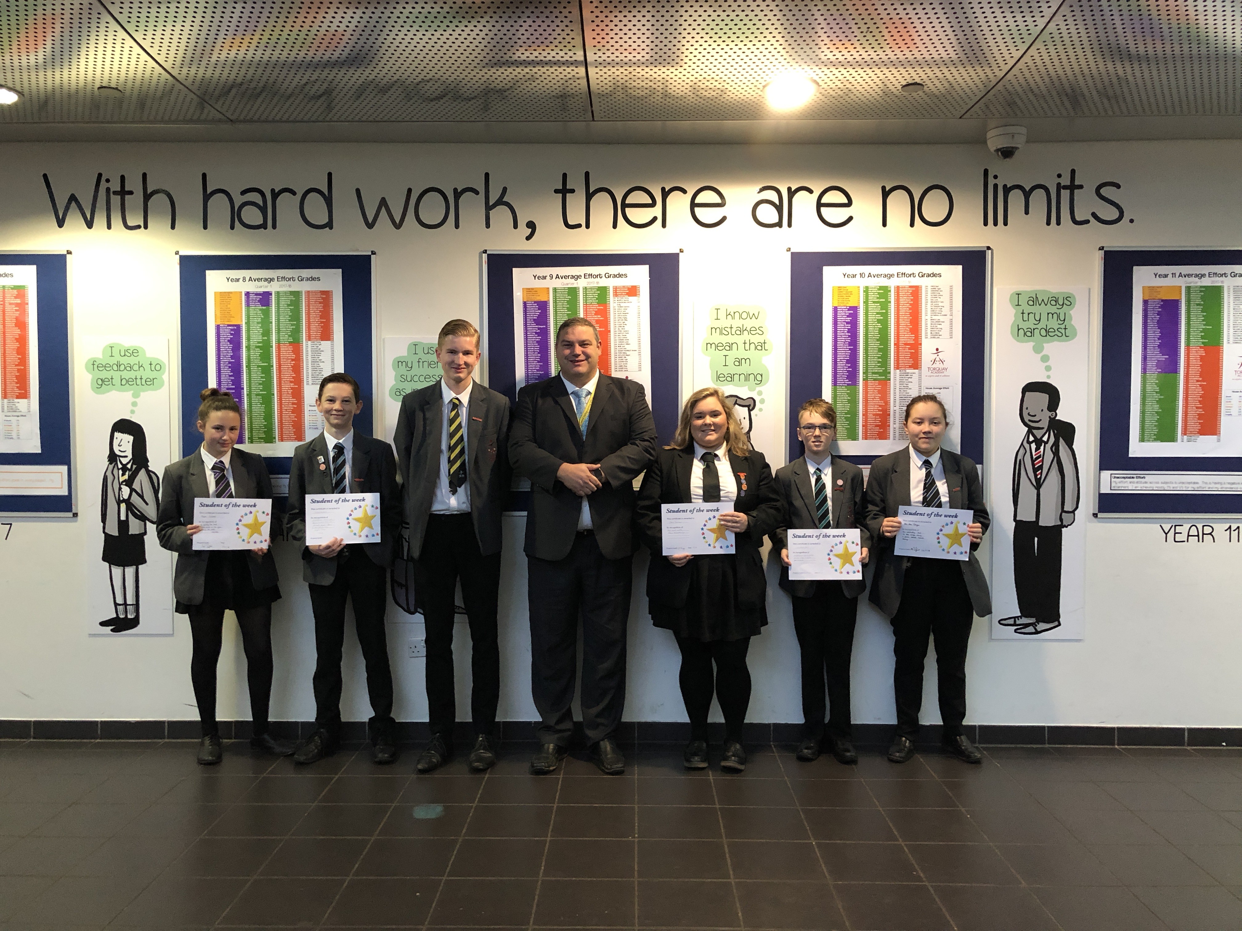 Students of the week this week with me: Year 7 William Hall, Year 8 Luke Howard, Year 9 Megan Conachie, Year 10 Ellie-Mae Gilligan, Year 11 Josh Nelson and Year 13 Samantha Turner