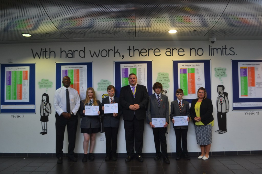 Students of the week this week with myself, Mr Fuller and Mrs Nicol are : Charlotte Povey, Joe Kelly, Billy Gelo, Zak Treleaven. Year 10 students not in photograph due to exam : Em Gale, Sasha Gill, Charlize Waddington