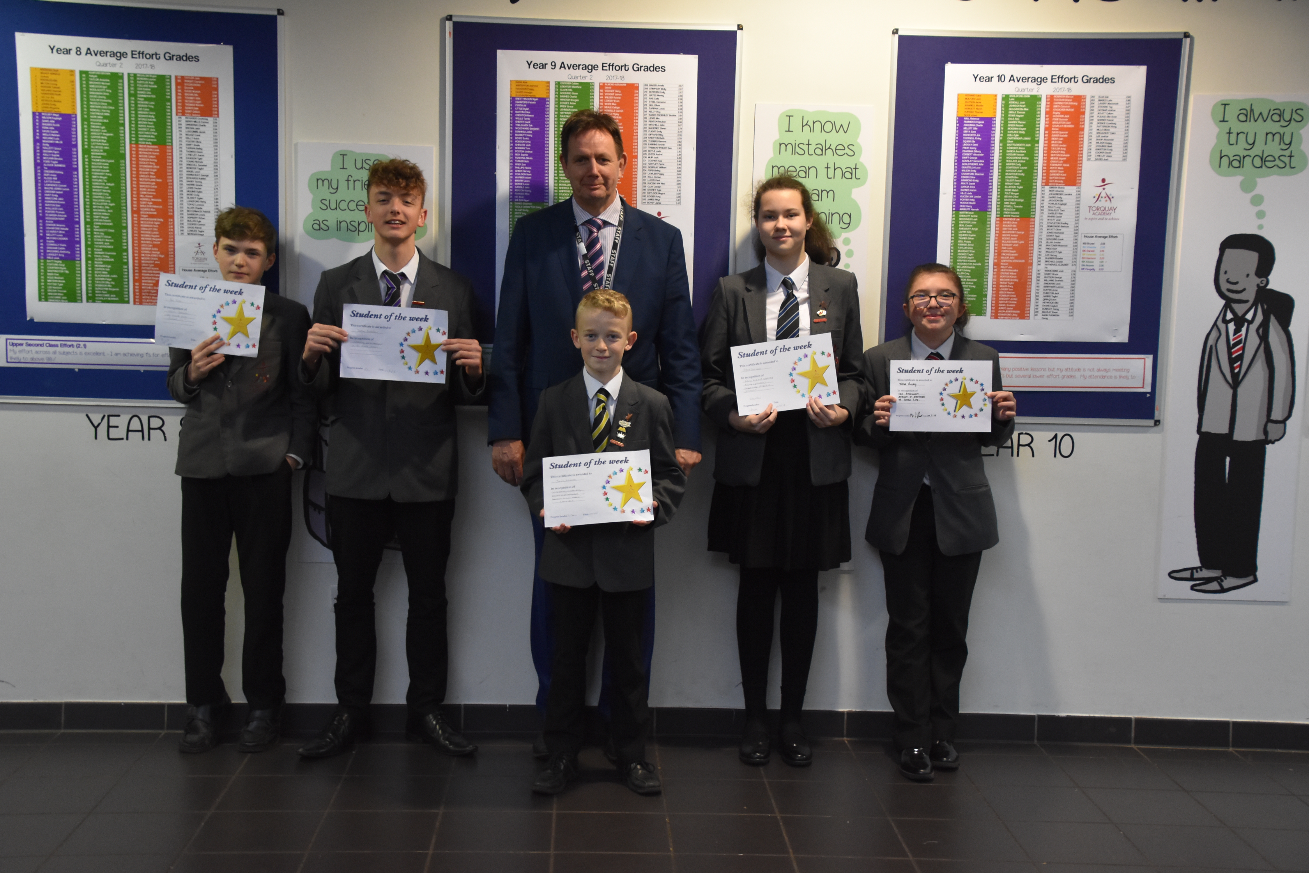 Students of the Week with Mr Pugh are : Ben Turton – Yr 9, Jordon Bradshaw – Yr 11, Jack Howlett – Yr 7, Macie Simmonds – Yr 8, Jade Rusby – Yr 10