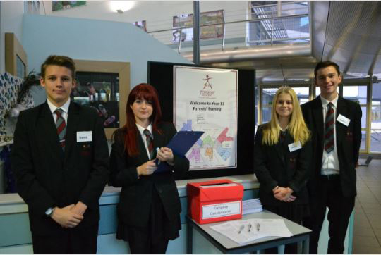 Pictured: Our Sixth Form students, Gareth, Chloe, Correy and Nathan who were on hand to greet parents at last night’s Year 11 Parents’ Evening