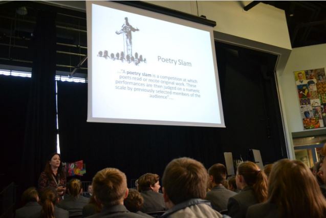 Pictured: Mrs Tanner introducing the Poetry Slam idea to our year 7 students earlier in the week