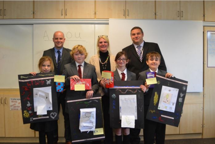 Pictured: (back from left) Assistant Principal Mr Withers, Governor Anne Derbyshire, Myself (front from left) Libby Finch, Max Fyrth, Nyah Silvester and Liam Mugliston