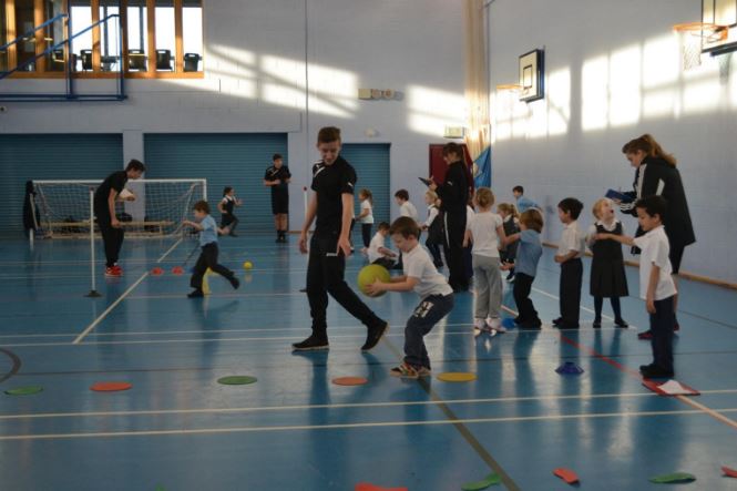 A class of 24 students from Torre Primary visited us this week and took part in a Multi-Sport Festival, organised by our Sixth Form BTEC Sport students. Pupils took part in various different activities involving target practice, balancing, footwork patterns and ball skills, all of which contributes to the development of the young student’s physical development and motor skills.