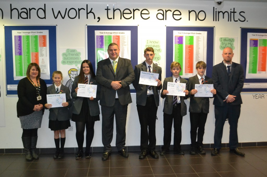 Students of the week with me, Mrs Nicol and Mr Withers are :Kimberly Taylor, Rebecca Vinson, Tyler Pickles, Josh Moules, Matt Leighton